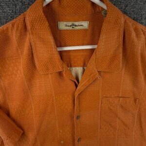 Tommy Bahama Short Sleeve Button Up Shirt Men Silk Hawaii Orange 2XL Copyright