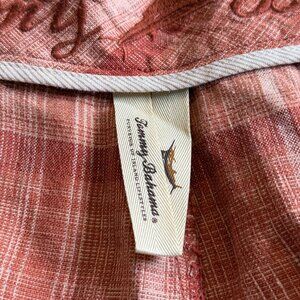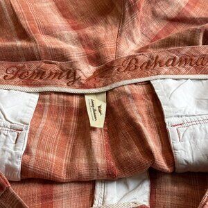 Tommy Bahama Shorts Linen Plaid Orange Flat Front Preppy Golf Resortwear Size 42