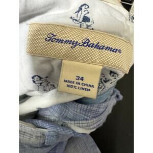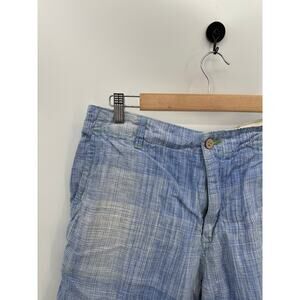 Tommy Bahama Shorts Men 34 Blue White Plaid Relax Zip Fly Linen Casual