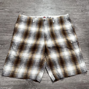Tommy Baham Shorts Mens 35 Beige Plaid Linen Silk Blend Preppy Golf Golfer Adult