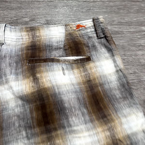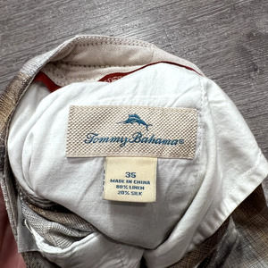 Tommy Bahama Shorts Mens 35 Beige Plaid Linen Silk Blend Preppy Golf Golfer