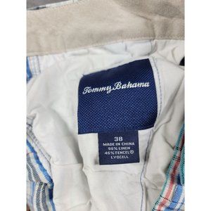 Tommy Bahama Shorts Mens 38 Chino Blue Plaid Linen Blend Zip Front 9" inseam