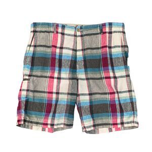 Tommy Bahama Shorts Mens 38 Linen Plaid Chino 9.5 Inseam Dockside Bermuda Golf