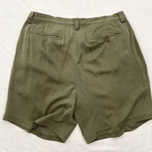Tommy Bahama Shorts Mens 38 Olive Green 100% Silk Pleated Front Dressy Casual