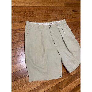 Tommy Bahama Shorts Mens Size 38 Beige 100% Silk Pleated Front Casual Golf Beach