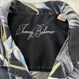 Tommy Bahama Silk Black Floral Print Hawaiian Shirt Men's Medium