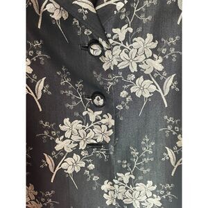 Tommy Bahama Silk Blend Jacquard Boxy Jacket 3/4 Length Sleeves Size 8 EUC. Elegant floral jacquard brocade jacket in black and grey. Features a notched collar. button front, and a slightly cropped boxy fit. 3/4 sleeves add to the retro flair. Fully lined. Perfect for evening events, resort or cruise dinners, or for adding a sophisticated touch to any outfit. Pit to pit 19.5", shoulder to hem 23". Non-smoking home. Check my other listings for the matching pants