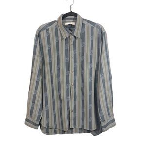 Tommy Bahama Silk Button Down Shirt Men's Large Striped Long Sleeve Casual Vacay
