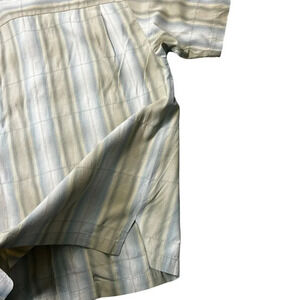 Tommy Bahama Silk Button Front Short Sleeve Shirt Safe Green Blue Stripe Size XL