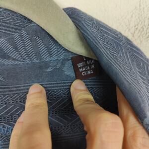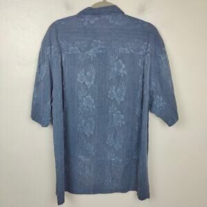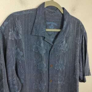 Tommy Bahama Silk Button Up Shirt Mens Large Navy Blue Embossed Hawaiian