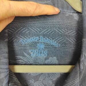 Tommy Bahama Silk Button Up Shirt Mens Large Navy Blue Embossed Hawaiian 36