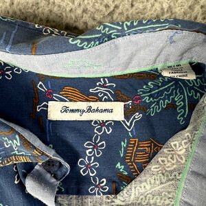 Tommy Bahama Silk Camp Shirt Men's Medium Hula Girl Palm Trees Print Button Up