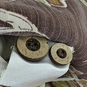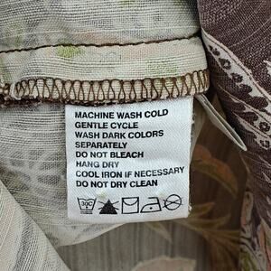 Tommy Bahama Hawaiian shirt in men's size XL. Short sleeve shirt is 100% silk. Pattern matches across the left and right sides of the shirt. Wood buttons. Straight hem with vented side seams. Autumn earth tones. Gently pre-owned.