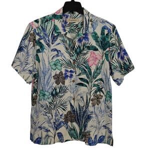 Tommy Bahama Silk Hawaiian Shirt Sz Medium Colorful Tropical Floral Beach Aloha