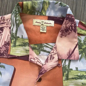 Tommy Bahama Silk Hawaiian Short Sleeve Button Down Camp Shirt Size Large Orange