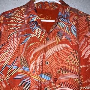 Tommy Bahama Silk Orange Hawaiian Palm Leave Button Down Shirt