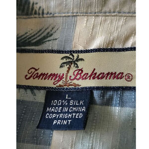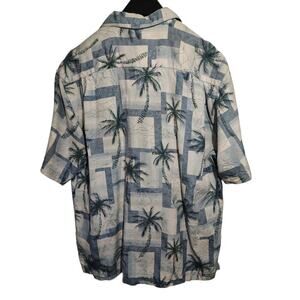 Tommy Bahama Silk Palm Tree Shirt Beige Blue Mens Size Large