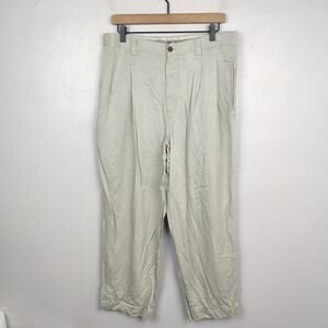 Tommy Bahama Silk Pants Mens 34 Light Beige Pleated Casual Hawaiian Beach Summer