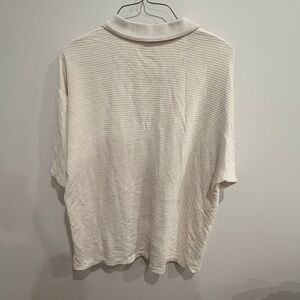 Elevate your wardrobe with this classic cream polo shirt. Perfect for any occasion, this shirt offers both style and comfort. Gently used, but still in good condition.