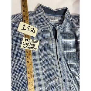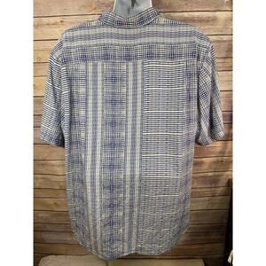 Tommy Bahama Silk Shirt 2XL Blue White Textured Stripe Short Sleeve Island Style