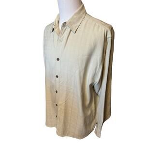 Tommy Bahama Silk Shirt Mens Beige Plaid Long Sleeve Button Down Size Large