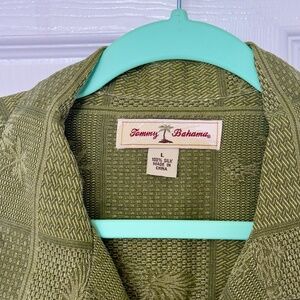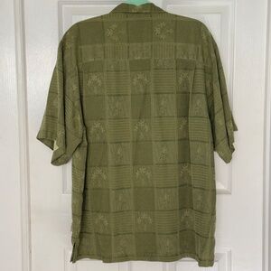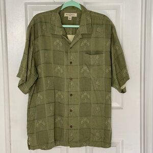 Tommy Bahama Silk Shirt Men's L Olive Green Palm Trees Pineapples Button Down