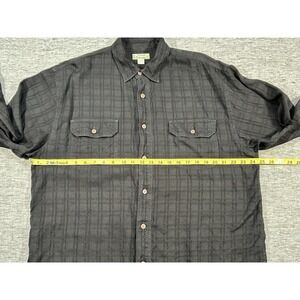 Tommy Bahama Silk Shirt Mens Large Black Plaid Long Sleeve Chest Pockets