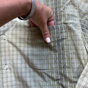 Green Tan Embroidered Large Hawaiian Tropical Casual Coastal