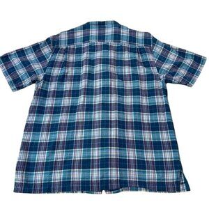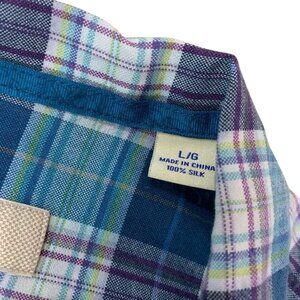 Tommy Bahama Silk Shirt Men's Size Large Aloha Hawaiian Style Casual Blue Plaid
