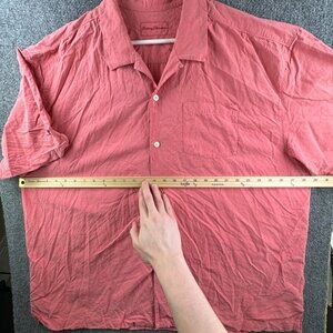 Tommy Bahama Silk Short Sleeve Button Up Shirt Mens Hawaiian Pink 2XL Print
