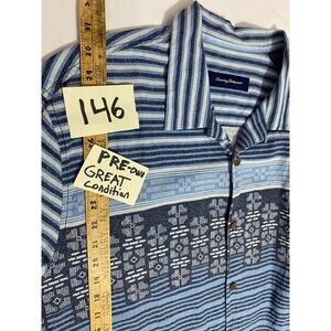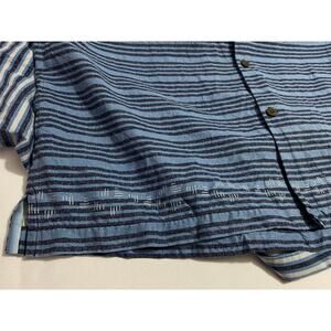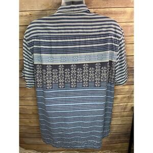 Tommy Bahama Silk Short Sleeve Button-Up Shirt Blue Stripe Geometric Size XL