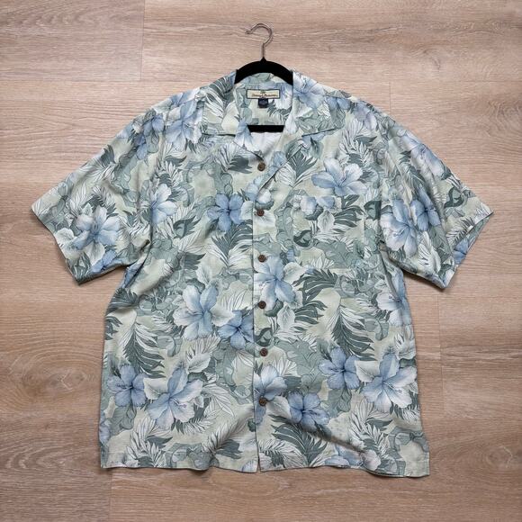 Tommy Bahama Silk Short Sleeve Pattern Button Up Shirt Men’s M Color Blue/Green