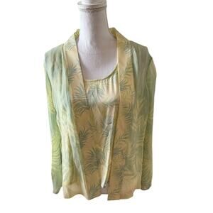 Tommy Bahama Silk Tank & Open Front Top Yellow Tropical Print L