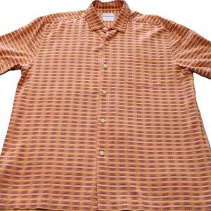 Tommy Bahama Silk/Cotton Blend Short-sleeved Shirt, Orange Plaid, Men's size XL