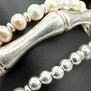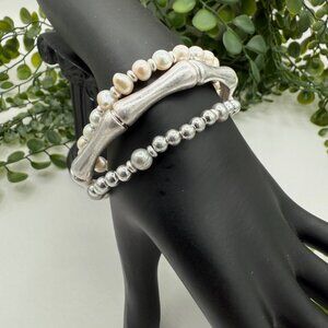 Tommy Bahama Silver Tone Triple Elastic Bracelet with Freshwater Pearls, NWT