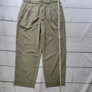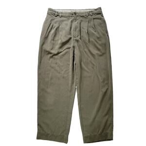 Pleated khaki colored pants with the durable softness of silk