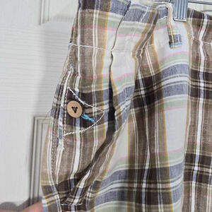 Tommy Bahama Size 42 100% Linen Mens Multicolor Check Shorts 10" Inseam Flat