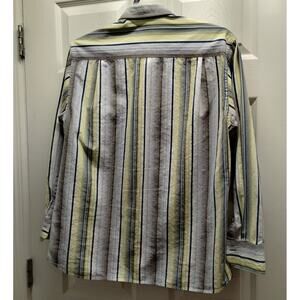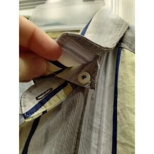 Tommy Bahama Size Large Cotton Silk Blend Blue Yellow Striped Button Down Shirt