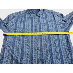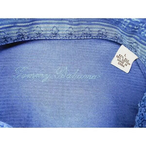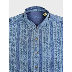 Tommy Bahama Size Large Men's Blue Pattern Silk Cotton Blend Logo Tag Shirt