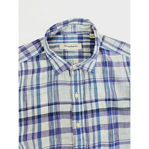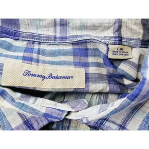 Tommy Bahama Size Large Mens Lightweight White Lilac Blue Check Enbroidered Logo