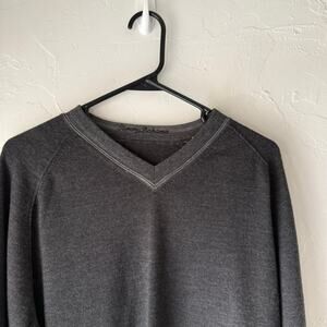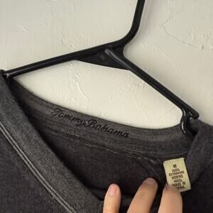Tommy Bahama Size M Grey 100% Merino Wool V Neck Sweater Preppy Old Money