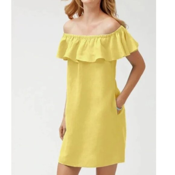 Tommy Bahama Size Medium Canary Yellow Off The Shoulder Linen Dress