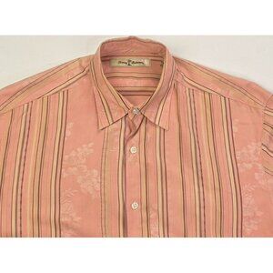 Tommy Bahama Size Medium Mens Salmon Strip Silk Blend Logo Tag Long Sleeve Shirt