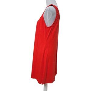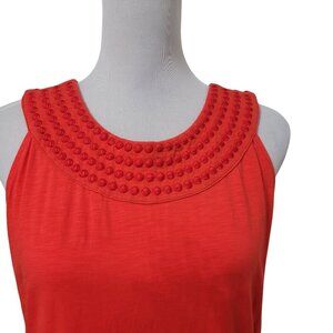 Tommy Bahama Size S Bright Coral Color Pearl Embroidered Sleeveless Shift Dress