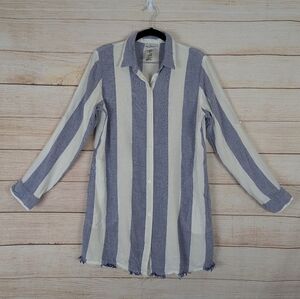 Tommy Bahama Size S/P Linen Blend Casual Blue White Rugby Stripe Dress Cover Up