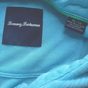 For sale is this Tommy Bahama classic full cut blue textured polo shirt in size extra large. This is a light blue shirt. This shirt is styled with a finished collar seam, three button placket, pullover style, square vented hem and embroidered Marlin logo on left chest. This soft fabric of 79% modal and 21% polyester is lightweight, fast dry fabric and is easy care machine washable, tumble dry or dry clean. Style #T216137