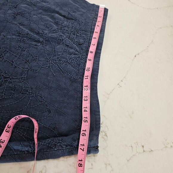 Tommy Bahama Skirt Size 12 Embroidered100% Linen Navy Blue A-Line