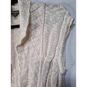 This is a Tommy Bahama sleeveless open front Cardigan, Cable knit. The relaxed fit and neutral color (off-white/cream) make it a versatile piece for layering. Great Condition.