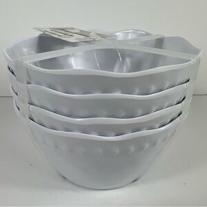 Tommy Bahama Small Round Melamine Bowls 4.5" White Dotted Edge Set of 4 NEW