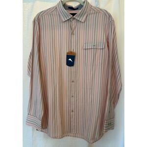 Tommy Bahama Sorrento Striped Pink Black Long Sleeve Shirt Men’s Size Large NWT